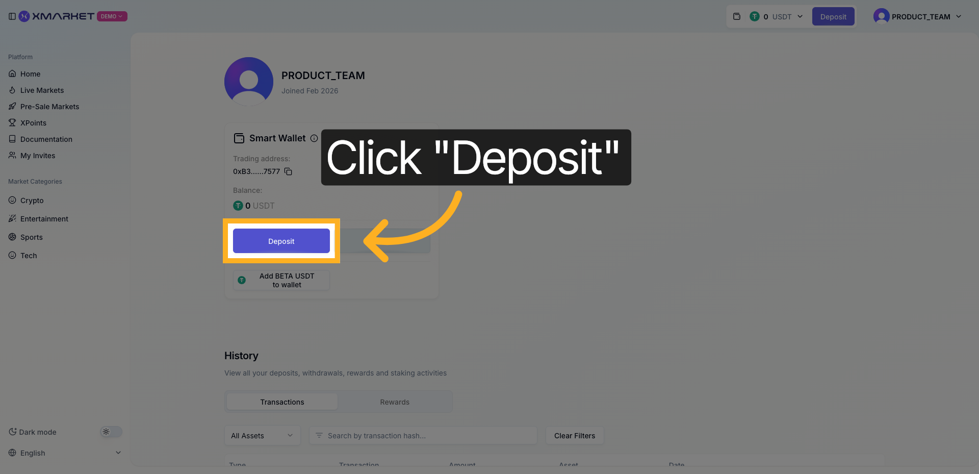 지원되는 자산을 Xmarket 계정에 입금하면: